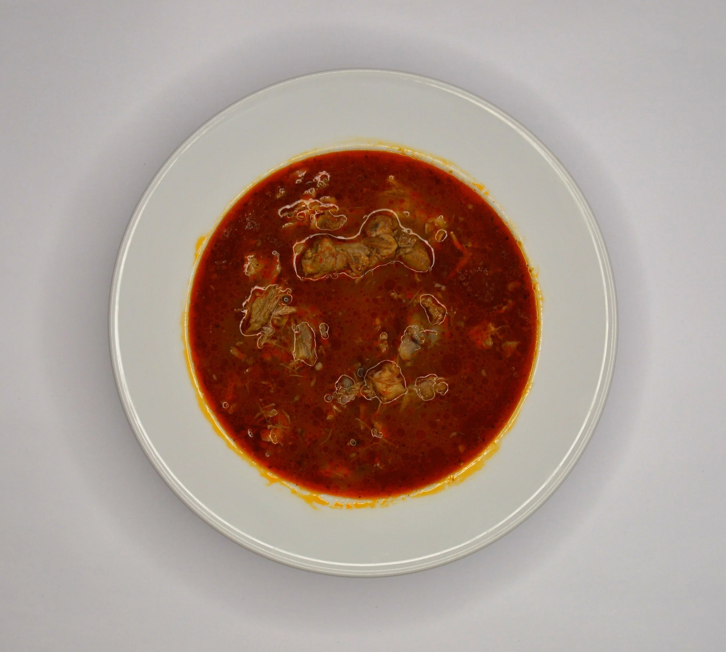 aus Lammrippen, Peperoni, Gegrillte-Tomaten & Brot, Salat